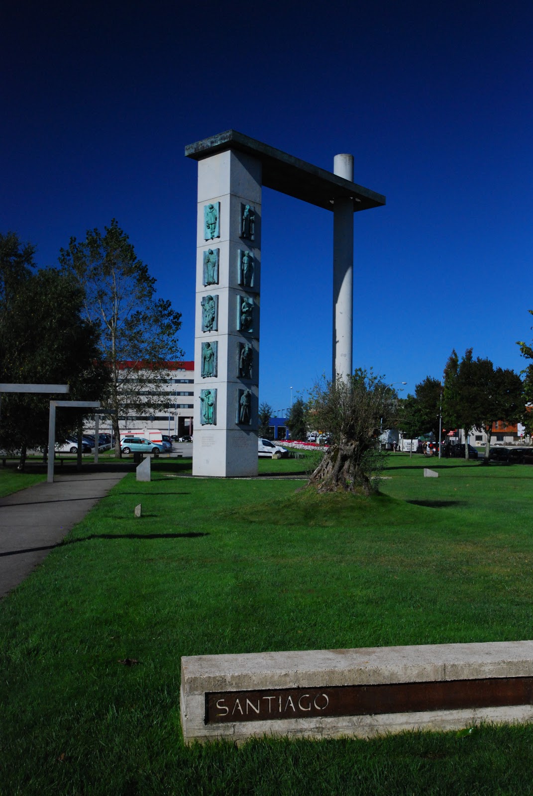 in the center of the plaza that marks the zero kilometer of the Camino.